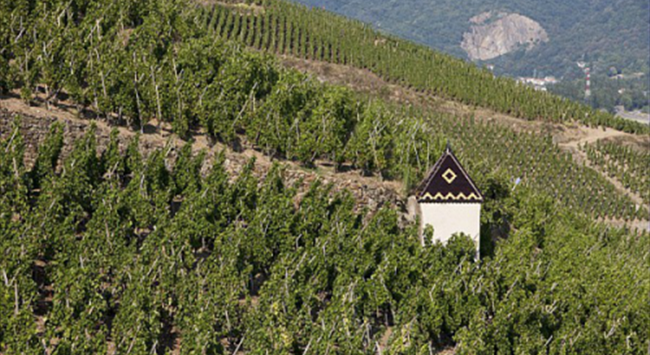 在北羅納河谷葡萄園,河流流經(jīng)之處多為狹窄的峽谷和陡峭的山坡,因此葡萄園也更多地種植在靠近河流的陡坡上。由于離海洋較遠(yuǎn),北羅納河谷葡萄園以大陸性氣候為主,但又多多少少會受到地中海(Mediterranean)氣候的影響,夏季炎熱干燥,冬季寒冷少雨。這里的土壤以礫石、石灰?guī)r和頁巖為主,排水性能優(yōu)越。這樣一來,種植在山坡上的葡萄藤可以更好地接收生長季充足的陽光,再加上排水性良好的土壤,有助于葡萄果實更好地成熟。北羅納河谷葡萄園著名的子產(chǎn)區(qū)羅第丘(Cote Rotie)在法語中意為“被炙烤的山坡”,就很形象地描繪了這一風(fēng)土特點。