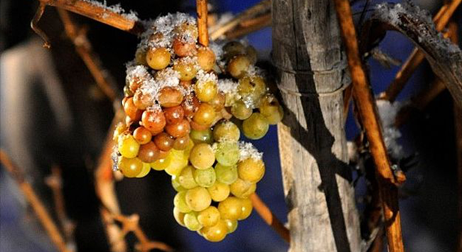 就如許多發(fā)明一樣,冰酒的誕生也是一次意外。據(jù)說在十八世紀(jì)末的德國(guó),葡萄還沒來得及采收,就遭遇了嚴(yán)寒天氣,釀酒師們被迫用結(jié)冰的葡萄來釀造葡萄酒,結(jié)果卻意外得到了香氣純凈馥郁、口感甜蜜誘人的佳釀。采用結(jié)冰葡萄釀酒的方法便由此在德國(guó)逐漸流傳開來。