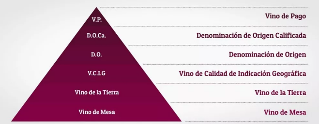 根據(jù)上面的圖片,我們可以看到,西班牙葡萄酒可以粗分為三個大的級別,他們由高到低分別是: