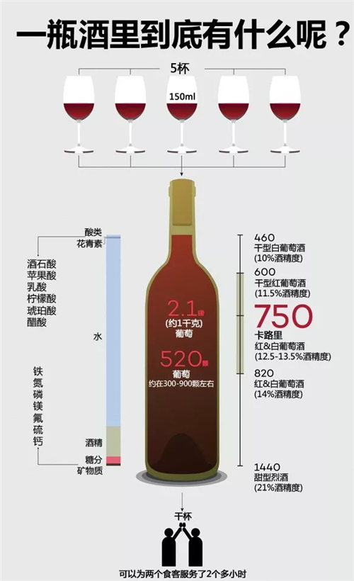 2、一瓶葡萄酒大概有750卡的熱量。(根據不同品種在460-1440卡浮動)