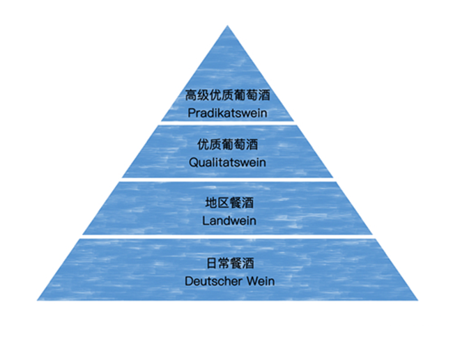 歐盟(EU)對具有地理標志標簽(Geographical Indications,簡稱GIs)的葡萄酒進行保護,分為原產地命名保護(Protected Designation of Origin,簡稱PDO)和地理標志保護(Protected Geographical Indication,簡稱PGI)兩大類,且PDO比PGI有著更嚴格的規定。德國葡萄酒也適用于這一法規,所有葡萄酒被分為以下4個等級: