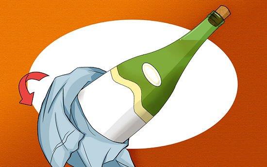 1、用一條毛巾包裹住葡萄酒的底部。
