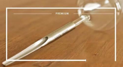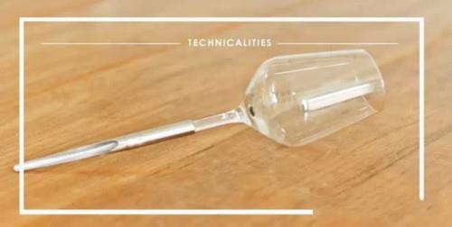 這款紅酒杯的上端設(shè)計和大家日常使用的紅酒杯相同,只不過在下端進(jìn)行了創(chuàng)新設(shè)計。在酒杯的底部,并不是傳統(tǒng)底座式設(shè)計,而是采用了類似于針尖的形狀。