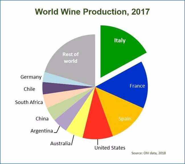 △2017年全球葡萄酒產(chǎn)國產(chǎn)量圖:意大利第一,法國第二