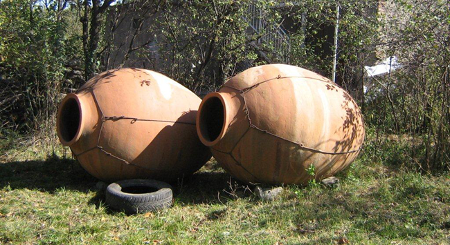 由于三種陶罐的底座相比瓶身都比較窄小,在使用過程中,人們常常將陶罐埋在地下,只留一截開口在外,以保持罐體的穩(wěn)定性。埋入地下并封閉開口后,陶罐中的葡萄汁可在罐內(nèi)發(fā)酵并陳釀數(shù)年。由于陶罐的透氣性佳,能使酒液與氧氣充分接觸,因此能夠賦予葡萄酒非常復(fù)雜的陳釀香氣,如堅果、巧克力和烘烤水果香氣等。因為產(chǎn)量極低,如今陶罐葡萄酒一瓶難求,但有些酒莊開始了“復(fù)古”的嘗試,只要細(xì)心尋找,還是能邂逅一些返璞歸真的陳年美酒。