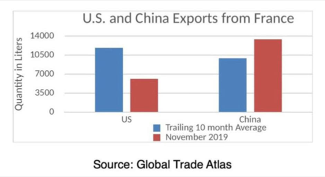 目前的關(guān)稅在迫使歐盟執(zhí)行DSB(即WTO爭端解決實體)建議方面是無效的。在實施關(guān)稅的頭一個月,法國葡萄酒貿(mào)易的全球出口卻大幅增長,恰好說明了這一點。法國葡萄酒的世界買家中,就有中國的身影。