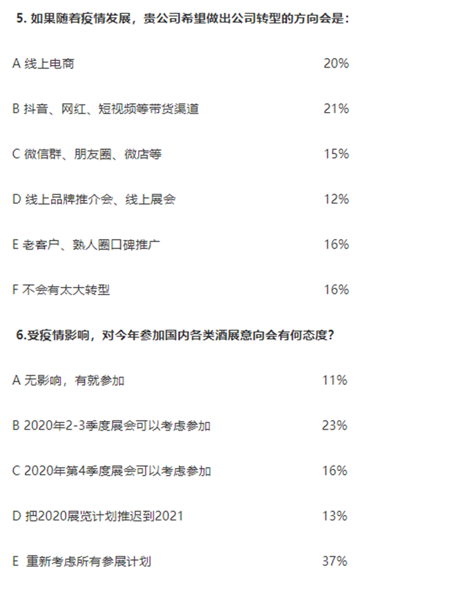 5. 68%的企業對線上形式的轉型方向感興趣,包括:線上電商、抖音、網紅、短視頻微、信群、朋友圈、微店、線上品牌推介會、線上展會等渠道。