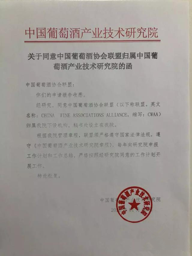 為了進一步推動聯(lián)盟工作,營造更加良好的工作環(huán)境和合理合法的開展工作,近日,中國葡萄酒產(chǎn)業(yè)技術研究院審批通過中國葡萄酒協(xié)會聯(lián)盟歸屬中國葡萄酒產(chǎn)業(yè)技術研究院領導,秘書處設立在中國葡萄酒產(chǎn)業(yè)技術研究院。今后聯(lián)盟工作將在中國葡萄酒產(chǎn)業(yè)技術研究院的直接領導下開展工作,報備工作計劃和工作總結。