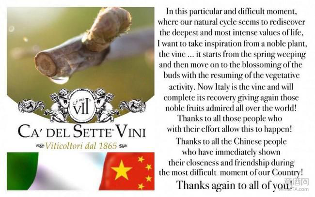危難見真情。中國抗擊新冠病毒疫情的戰役剛接近尾聲,就向意大利無私的伸出援手,派出精英醫療隊、援助醫療防疫物資。意大利酒莊通過海報、宣傳,表達對中國人民的感激之情。