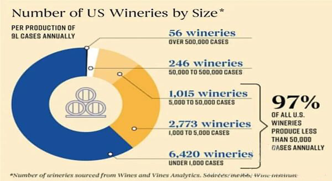 美國(guó)97%的酒廠生產(chǎn)的葡萄酒總和不到50000箱,預(yù)計(jì)年收入損失在36%到66%之間,受影響最大的是小型酒廠。規(guī)模越小的酒廠損失則越大,生產(chǎn)1000至5000箱的酒廠預(yù)計(jì)損失47.5%的年收入,而生產(chǎn)1000箱以下的酒廠其損失高達(dá)66%。