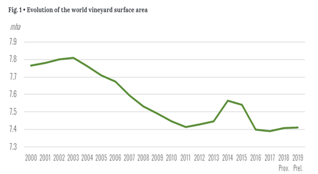2019年的最新數據顯示:法國(794000公頃)、意大利(708000公頃)、葡萄牙(195000公頃)和保加利亞(67000公頃)的葡萄種植面積有所增加。