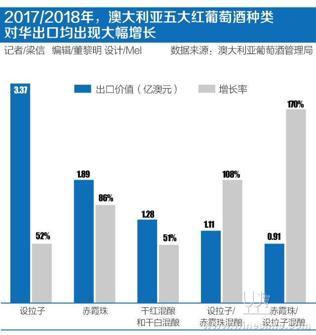 澳大利亞葡萄酒管理局的報告顯示,過去一年,各個價位的澳大利亞葡萄酒對華出口都在增長,高端葡萄酒的增勢最為迅猛,價值在每升200澳元以上的葡萄酒出口增長超過220%。