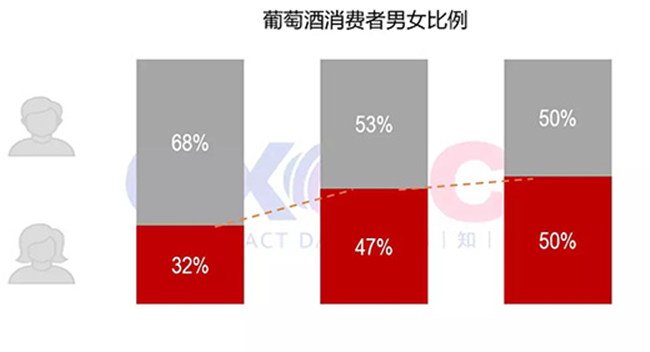 近年來(lái),女性在葡萄酒消費(fèi)者中占比逐年擴(kuò)大。有相關(guān)數(shù)據(jù)統(tǒng)計(jì),女性消費(fèi)人數(shù)正以每年22%的速度增長(zhǎng)。跟據(jù)2017年香港貿(mào)發(fā)局對(duì)內(nèi)地葡萄酒消費(fèi)者做的抽樣調(diào)查顯示,男性消費(fèi)者與女性消費(fèi)者占比相當(dāng),各占50%。