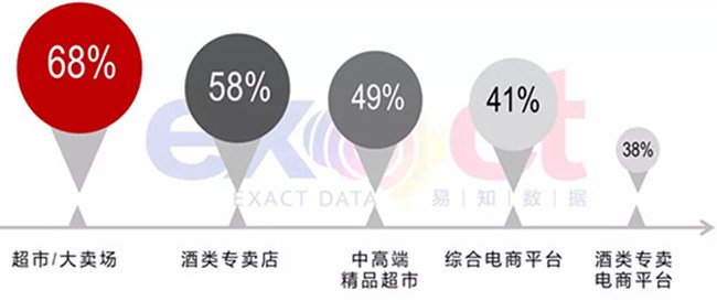 近年線上零售發(fā)展迅猛,雖然從數(shù)據(jù)來(lái)看,超市/大賣場(chǎng)、酒類專賣店、精品超市三種傳統(tǒng)零售渠道仍占大比重,但仍然有41%和38%的消費(fèi)者選擇線上平臺(tái)。且隨著千禧一代年輕消費(fèi)者崛起,線上消費(fèi)的意愿會(huì)更強(qiáng)烈。