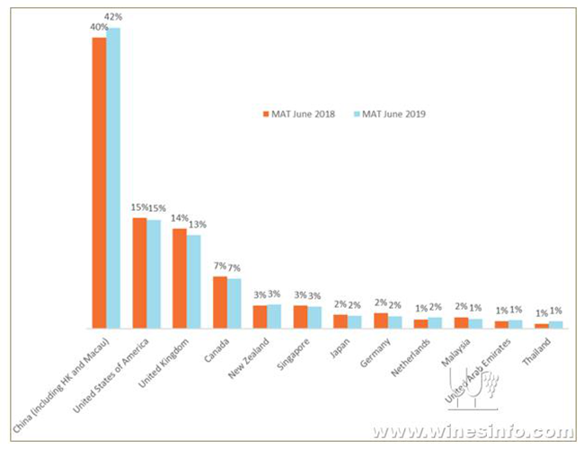 澳大利亞葡萄酒管理局(Wine Australia)近期發(fā)布了截至2019年6月的12個(gè)月的出口報(bào)告,報(bào)告顯示2018-2019財(cái)年澳洲對(duì)中國(guó)(包括香港和澳門)的葡萄酒出口創(chuàng)下了最新記錄,出口值增長(zhǎng)了7%,達(dá)到12億澳元。