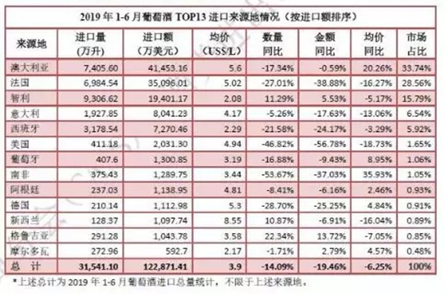 另外,從數(shù)據(jù)可以看出,1-6月份,中國前五大葡萄酒進(jìn)口國中,智利是唯一保持量額雙升的國家。