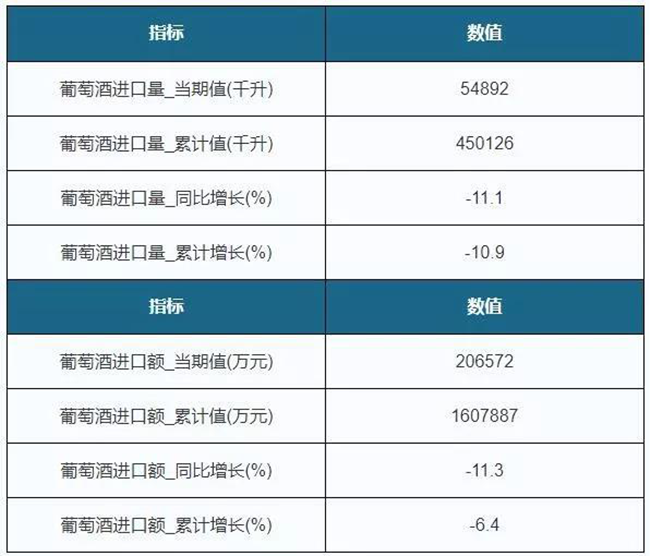 2019年8月我國葡萄酒進(jìn)口量為54892千升,同比下降11.1%,進(jìn)口金額為206572萬元,同比下降11.3%;1-8月進(jìn)口量為450126千升,累計(jì)下降10.9%,進(jìn)口金額為1607887萬元,累計(jì)下降6.4%。