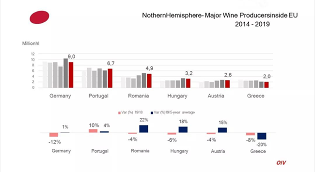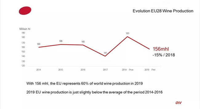 OIV的數(shù)據(jù)來自28個國家,占全球葡萄酒產(chǎn)量的85%。