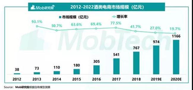 根據IWSR (國際葡萄酒及烈酒研究所) 公開的數據顯示,中國在2018年線上酒水市場規模就已經達到了6.1億美元,這個數額是美國線上酒水銷售的4倍之多,是英國和法國市場的3倍。