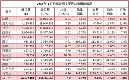 2018年1-2月進口酒數據出爐:葡萄酒消費升級趨勢明顯